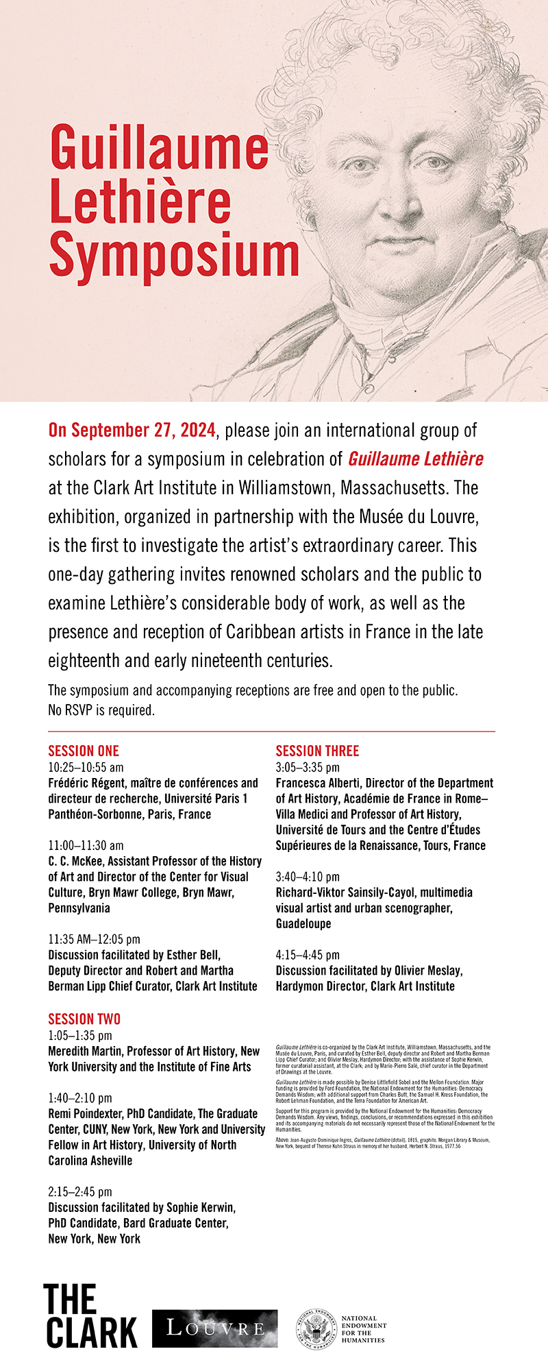 On September 27, 2024 AHNCA members are invited to attend a symposium organized by the Clark Art Institute to coincide with the exhibition Guillaume Lethière. See details below.