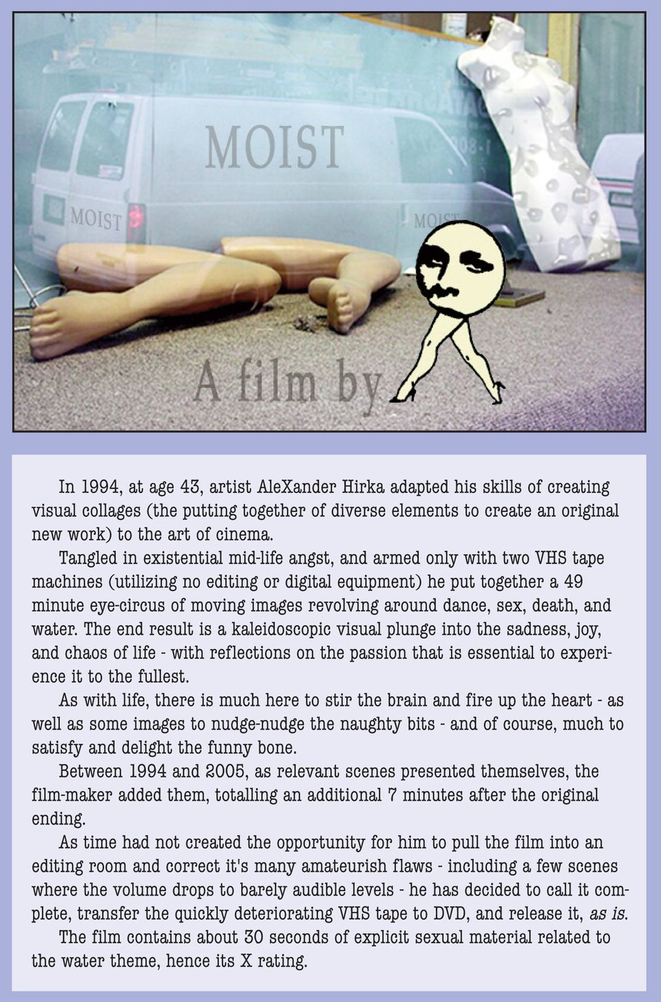 A new hour-long film by AleXander Hirka, whose last full-length cinematic foray was 31 years ago, with 1994's "MOIST".