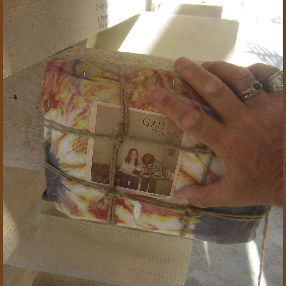 Letters to my mother, written by me (and my girlfriend Gail), in 1970-1971, bundled up and hung at the Temple at Burning Man in 2017. They were burned along with the Temple at the end of the event. Gail (1954-1982) would have been 70 today.