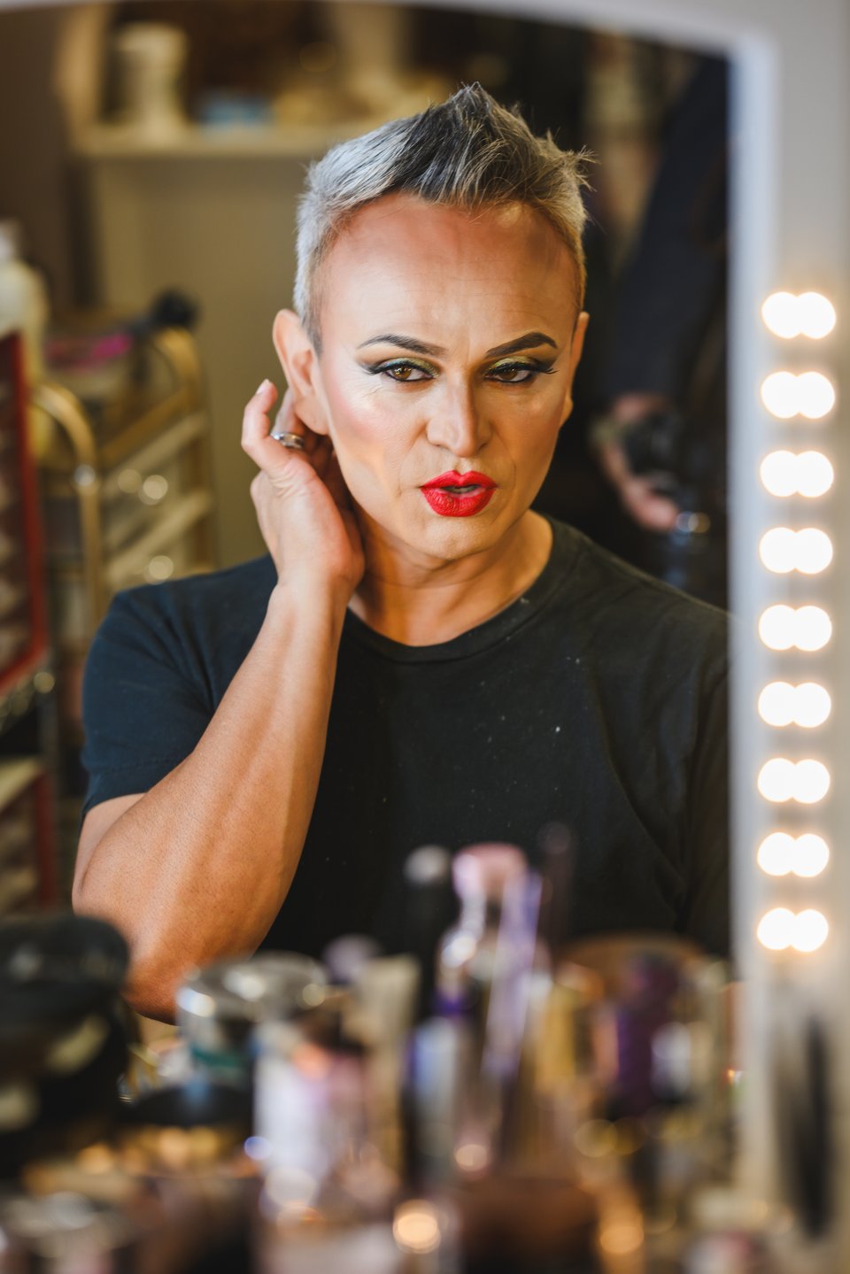 I shot a great wedding on Saturday between two grooms, one of which is a popular drag performer, performing as Lady V. The couple made sure to let me know that it would be a pretty wild, entertaining evening and that Lady V. and others would be performing. They wanted photos of the process it takes to become Lady V. It felt like a great honor to be invited into the space where all the preparation happens.