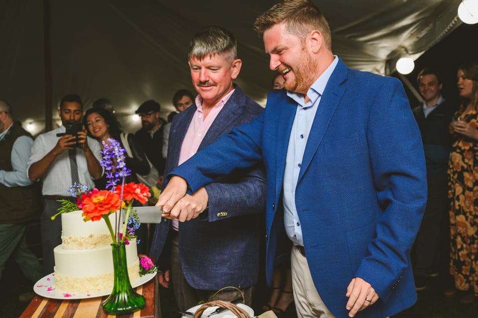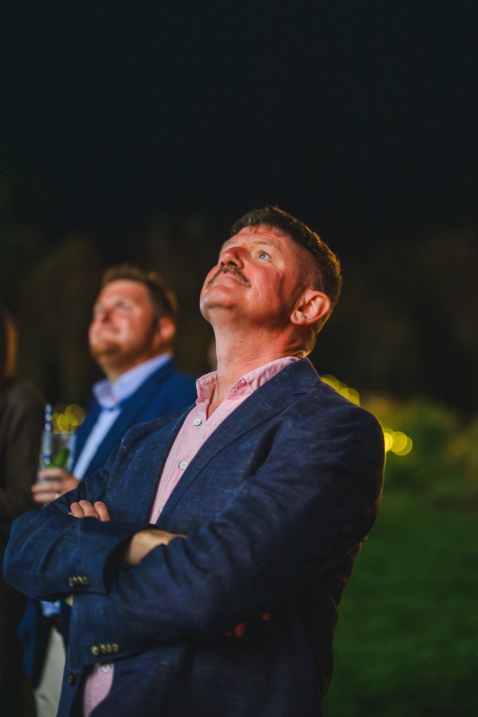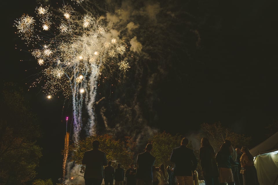 It was laid back until the very end, then it got dramatic. One of the groom's fathers set off fireworks which set some grass on fire. Hats off to the bartenders and catering team for dragging their water and ice buckets through a goat pen to reach the fire and put it out. Exciting!