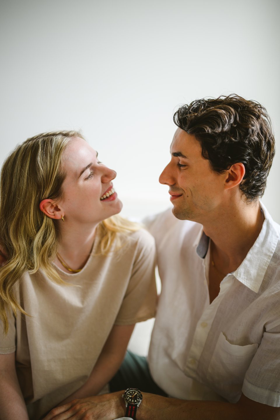 First off the couple was cool, after talking to them briefly I could tell that they had a ton of chemistry. My plan with them was to get a shot with really shallow depth of field of one of them looking at the other. The person gazing at the other would be out of focus and the person being gazed at would be in focus to put emphasis on the feeling of being gazed at by someone who loves you. I wanted his gaze to read even though he would be out of focus. I gave them a little bit of guidance and boom, they nailed it. It was quick and easy and I told them to just freestyle and I got a few more shots but I knew my first assignment was done.