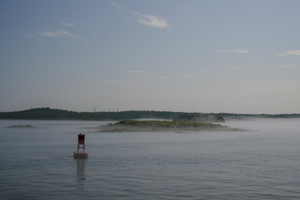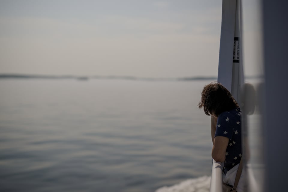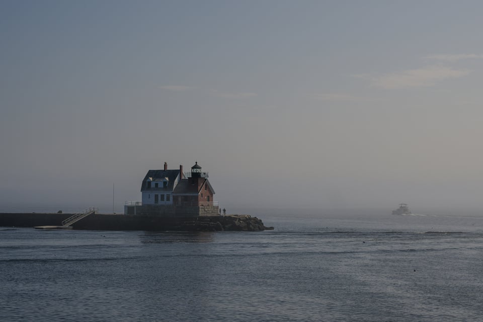 After a lazy 4th of July I woke up crazy early on the 5th and drove up to Rockland to hop on a ferry to head to the island of Vinalhaven to shoot Olivia+Will's engagement photos. Again, the forecast was completely wrong. It was supposed to be cloudy and in the lower-60s on the island so I didn't bring sun block and had a dumb jacket with me. Instead, the early morning ferry ride was foggy and beautiful. Not spooky foggy but SUNNY FOGGY.