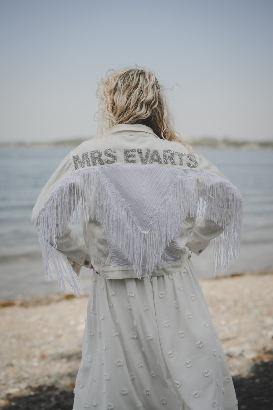 The shoot was fun, but again, not the weather we were supposed to have. The fog burned off so it was just hot and sunny and I got a pretty intense sunburn. Wamp wamp. Check out Olivia's custom wedding jacket.