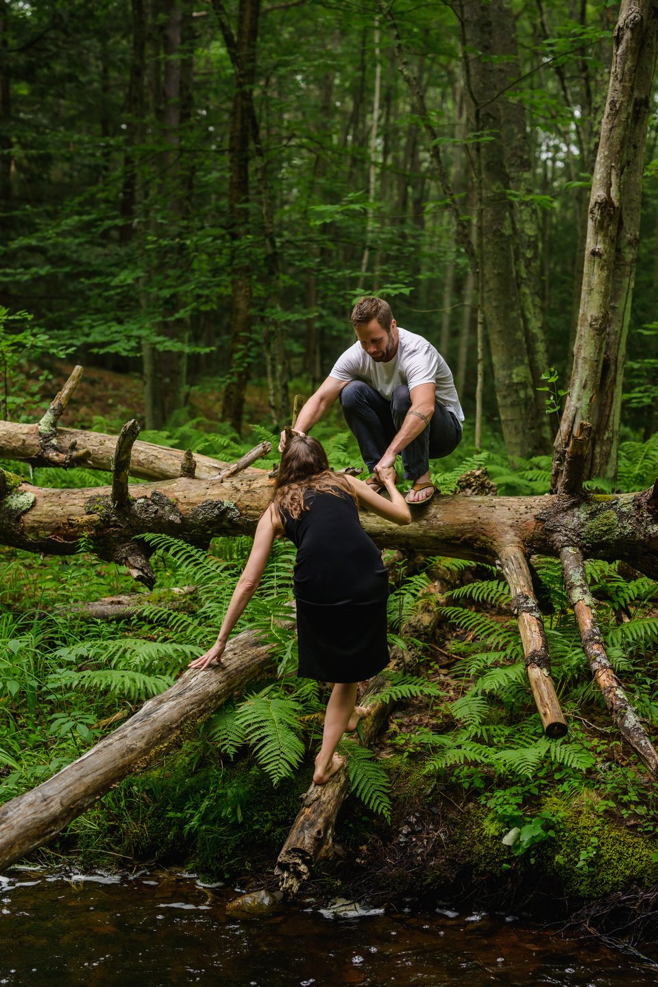 Then they came down and I said "Okay, stand by the water and look cute" and they said "NOPE" and walked across a rickety fallen tree to get to the other side of the stream.