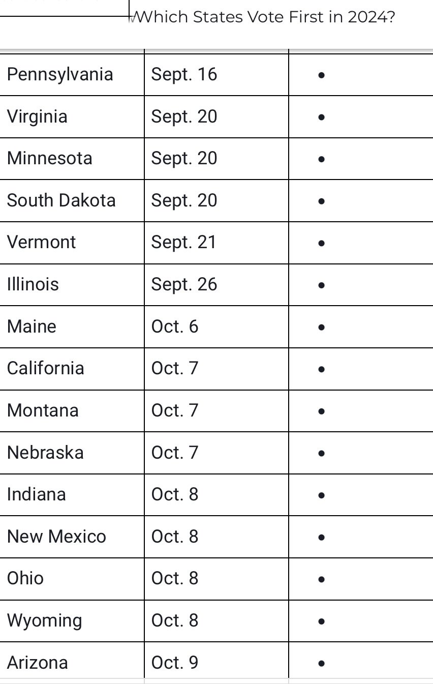 Early voting begins in one state on September 16 and in three states on September 20th - just 23 and 27 days away!