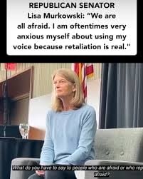 > Addressing a question about how to respond to people who are afraid in the current political climate, Murkowski responded: “We are all afraid.” It’s quite a statement,” she continued after a long pause, in remarks first reported by the Anchorage Daily News.