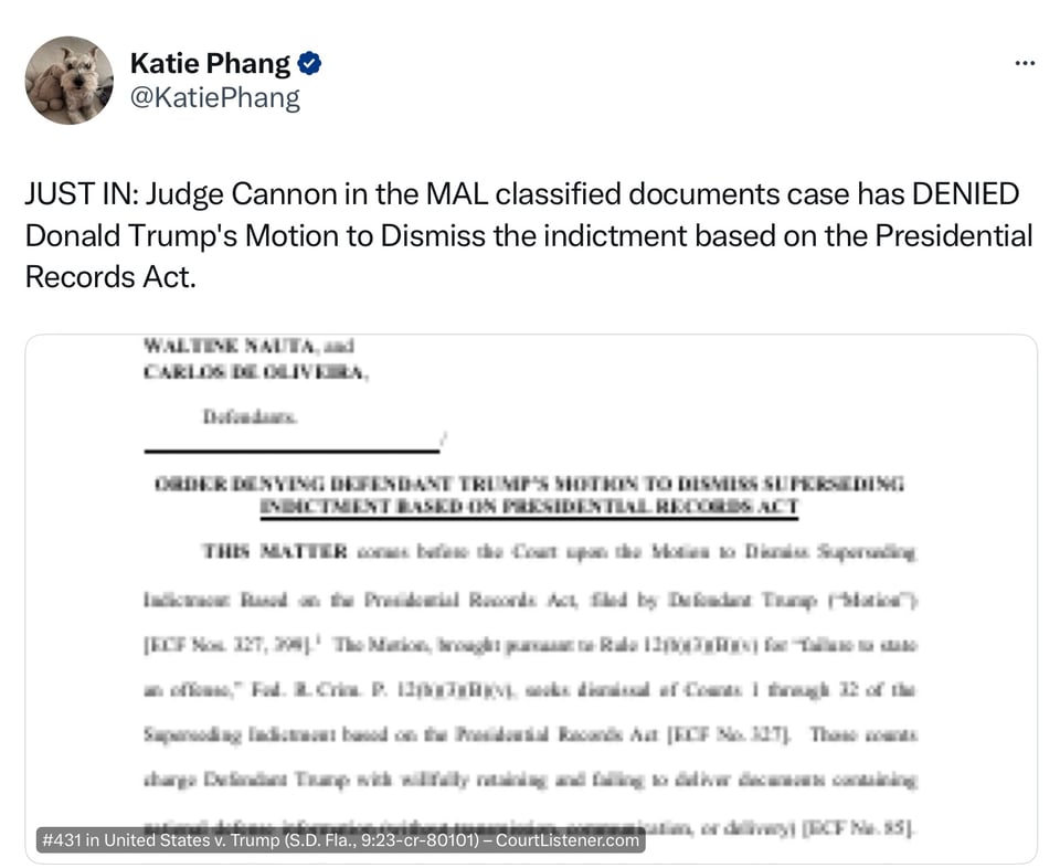 Judge McAfee Denies Trump's Motion To Dismiss On First Amendment Grounds.