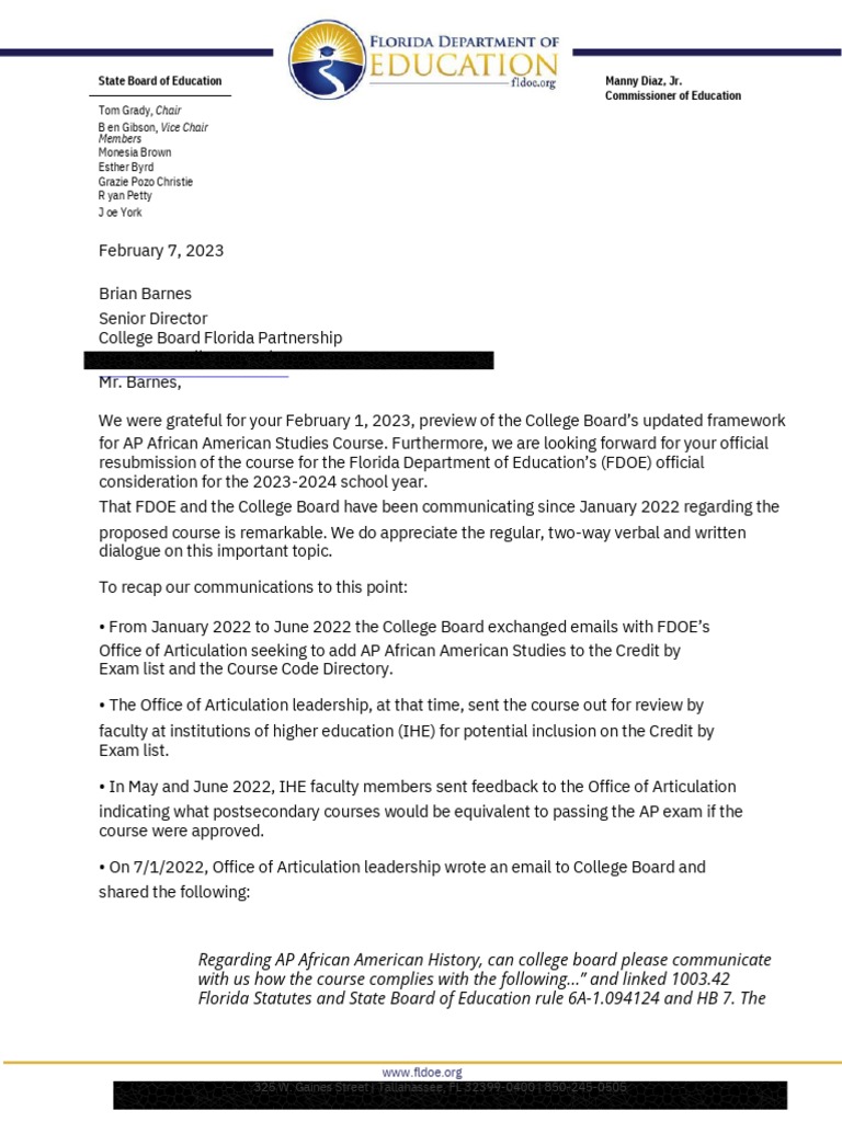 Below 👇 is the letter the Florida Department of Education sent to the College Board.