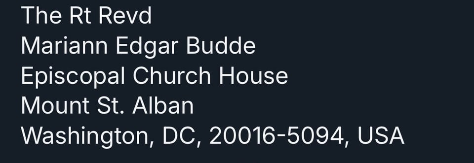 For those who want to send a note of support and gratitude to the Bishop of Washington: