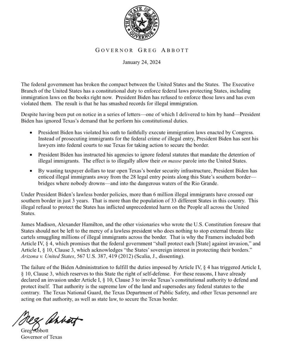BREAKING: MAGA Speaker Mike Johnson goes full-blown traitor and announces his support for Texas Governor Greg Abbott's illegal decision to defy the Supreme Court and federal government.
