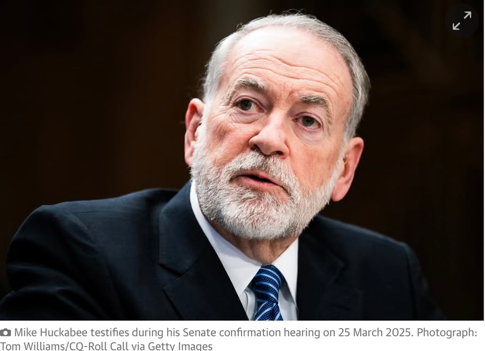 Yousef Munayyer, head of Palestine/Israel Program at the Arab Center Washington DC, said Huckabee was merely articulating what US policy has long demonstrated in practice. “Mike Huckabee is saying out loud what US actions have been saying for decades and across different administrations,” he said. “Whatever commitments have been made in statements about a Palestinian state over time, US policy has never matched those stated commitments and only undercut them.”