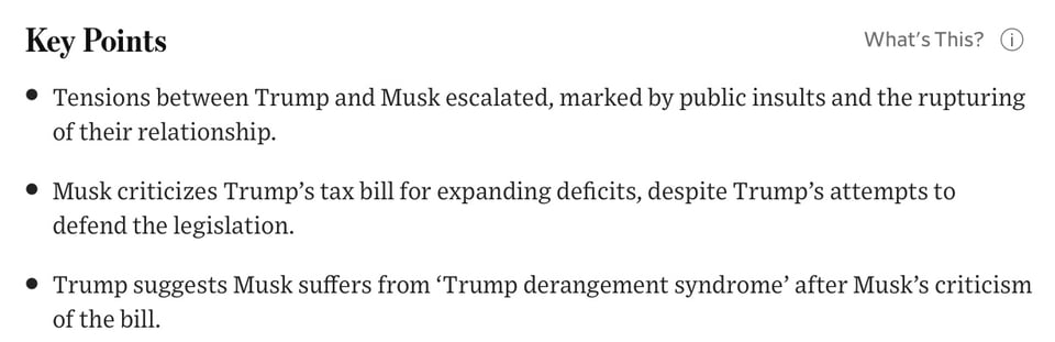 The trigger for the public falling out has been Musk’s aggressive criticism of Trump “one big, beautiful bill,” which extends and expands tax cuts while also adding money for border enforcement and the military—partially offset by reductions in spending on Medicaid, food aid and clean-energy tax credits.