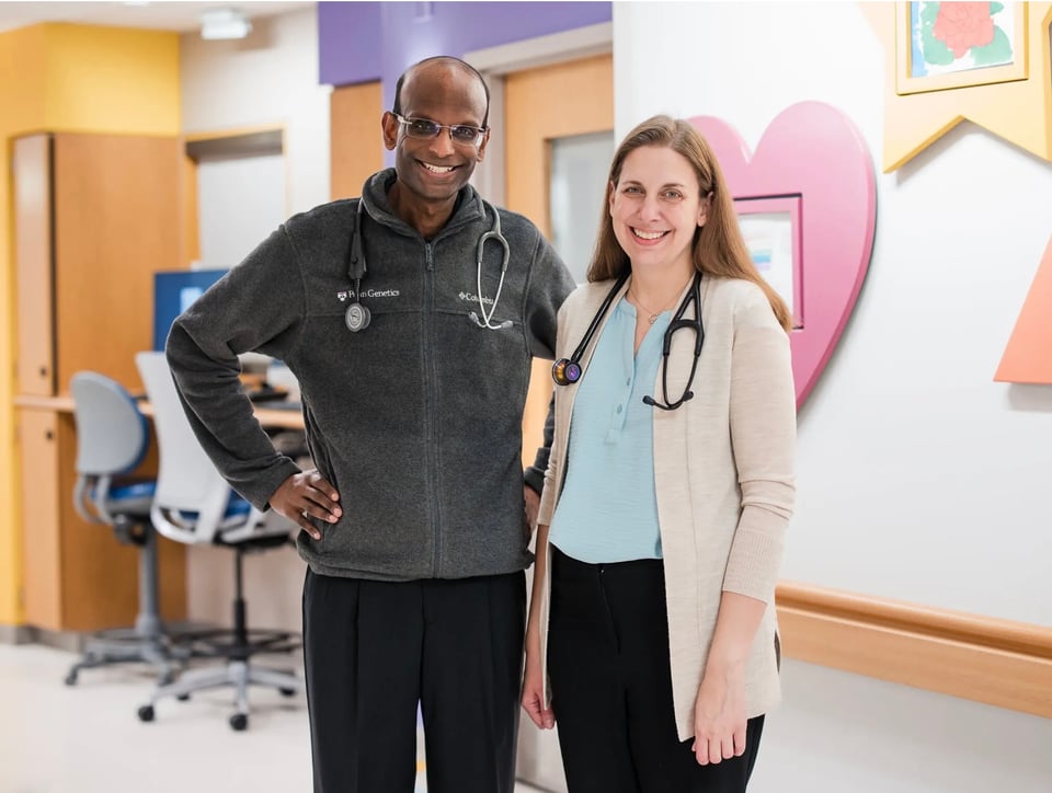 Dr. Kiran Musunuru, a gene-editing researcher at the University of Pennsylvania, left, and Dr. Rebecca Ahrens-Nicklas at the Children’s Hospital of Philadelphia.