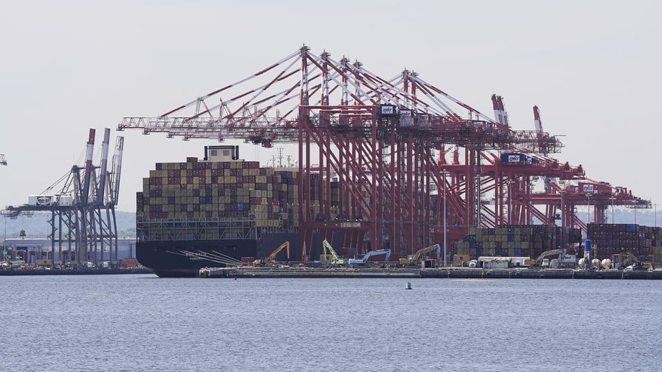 A container ship is moored at the port of the port of New York & New Jersey in Elizabeth, New Jersey, on Monday.