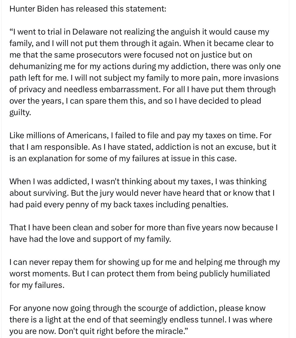 The Associated Press described Hunter Biden’s plea this way - Prosecutors were caught off guard when Hunter Biden’s lawyer told the judge Thursday morning that Hunter wanted to enter what’s known as an Alford plea, under which a defendant maintains their innocence but acknowledges prosecutors have enough evidence to secure a conviction.