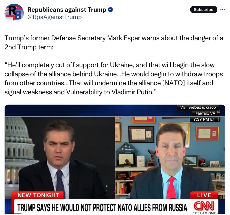 Here is one from Mike Esper, Trump’s Defense Secretary. Share it on Social Media.