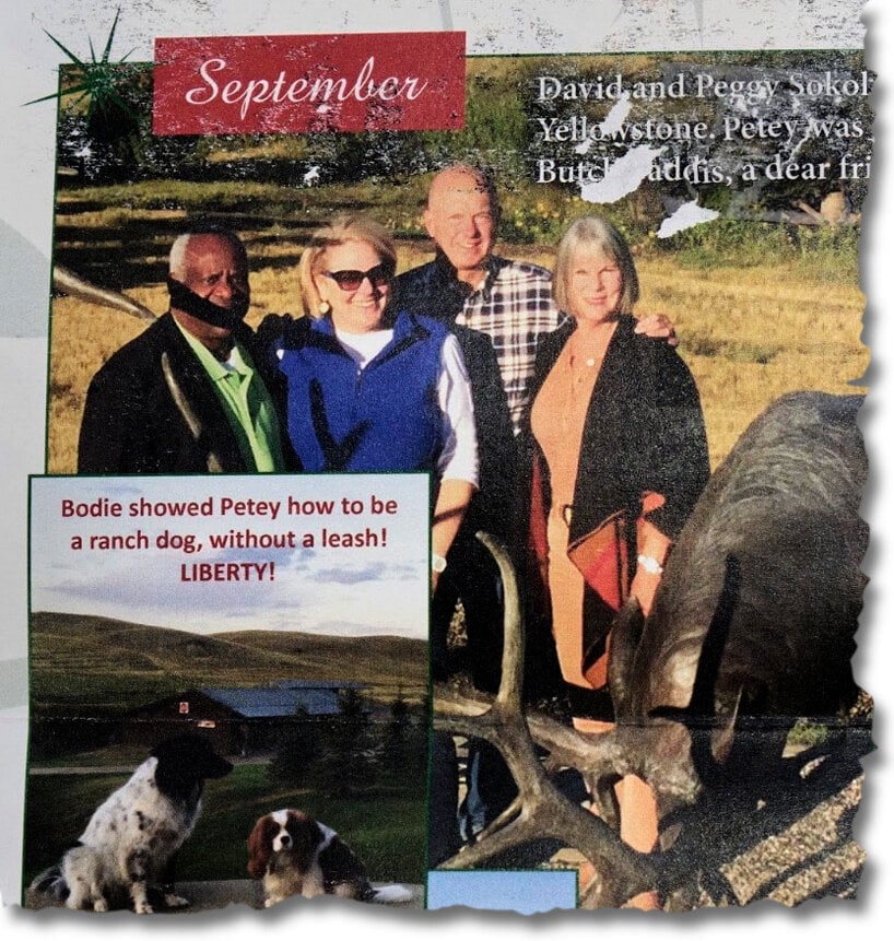 “David and Peggy Sokol hosted us in Montana for a ranch visit and tour of Yellowstone,” the Thomases said in the letter, which was reviewed by The Times. The Thomases brought along their dog, Petey, who played with the Sokols’ dog, Bodie. They wrote: “Bodie showed Petey how to be a ranch dog, without a leash! LIBERTY!”