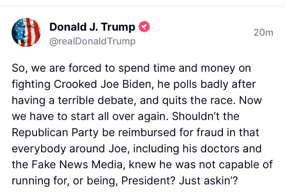 First, do you want to see what Trump had to say about the Democratic Restart?