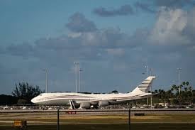 Qatar has handed over a luxury Boeing 747 jet meant for Mr. Trump’s use. Credit...Al Drago for The New York Times.