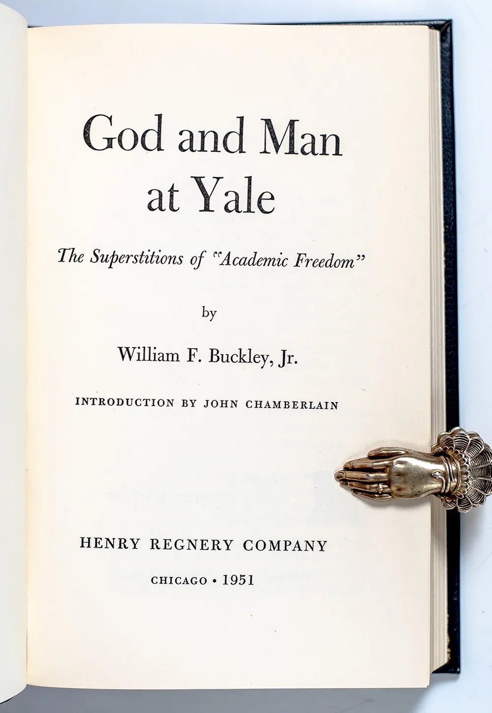 William F. Buckley Jr. applied this line of thinking to higher education in his 1951 God and Man at Yale: The Superstitions of Academic Freedom. In it, Buckley argued that Yale University was corrupted by “atheism” and “collectivism” not because its faculty actually called for atheism and collectivism, but because their embrace of fact-based argument supported the government that had grown out of the New Deal.