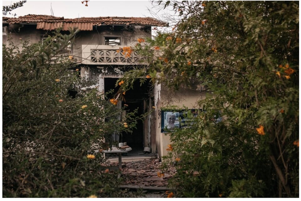 Beyond the kibbutz gate, Yonatan pulled up to what remained of his mother’s house, its walls covered in burn marks. In a community of 1,000 people, 101 were killed. Vivian’s neighborhood was the first line of battle.