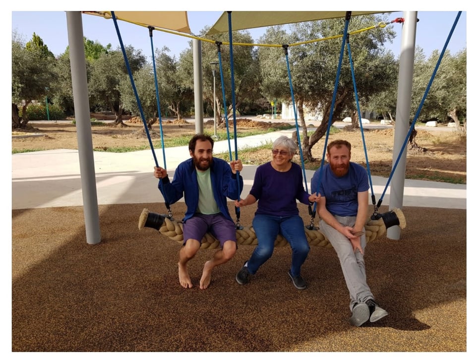 Silver with her sons, Yonatan (left) and Chen, at Kibbutz Be’eri in April 2018.Credit...Maayan Bar Tzur.