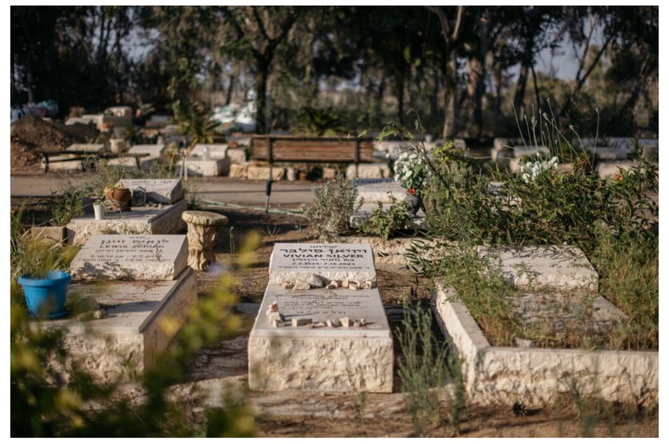 Silver’s gravestone in the Be’eri cemetery in August. The kibbutz sits just three miles from the Gaza border.Credit...Avishag Shaar-Yashuv for The New York Times