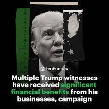 “It feels very shady, especially as you detect a pattern. … I would worry about it having a corrupt influence,” Barbara McQuade, a former U.S. attorney for the Eastern District of Michigan, said after hearing from ProPublica about benefits provided to potential Trump witnesses.