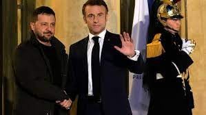 Zelenskyy was greeted in Paris at the Elysee presidential palace by President Emmanuel Macron.