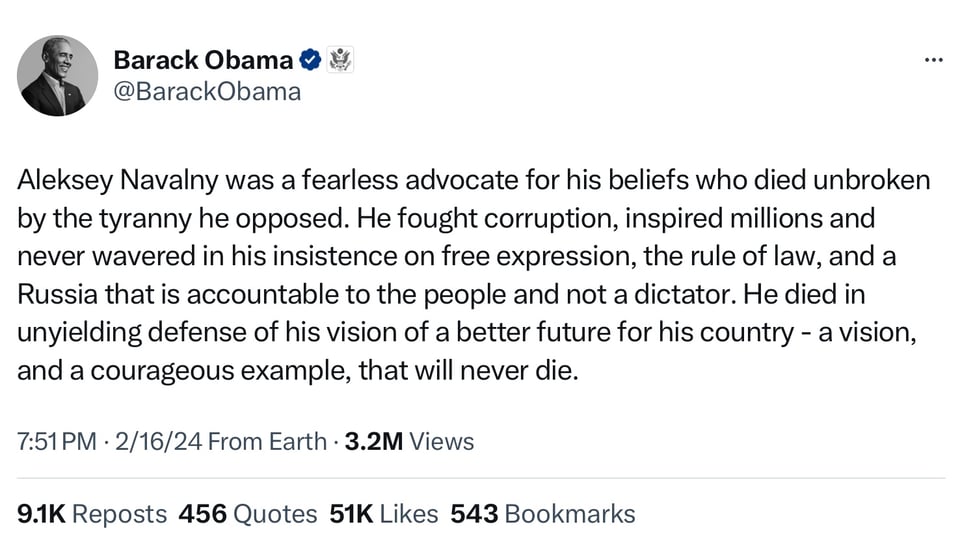 President Biden - “Make no mistake, Putin is responsible for Navalny’s death.”