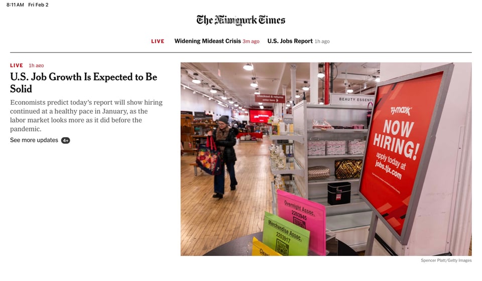 Usually, as we await the Jobs report, the Times prepares us for economic Armageddon.