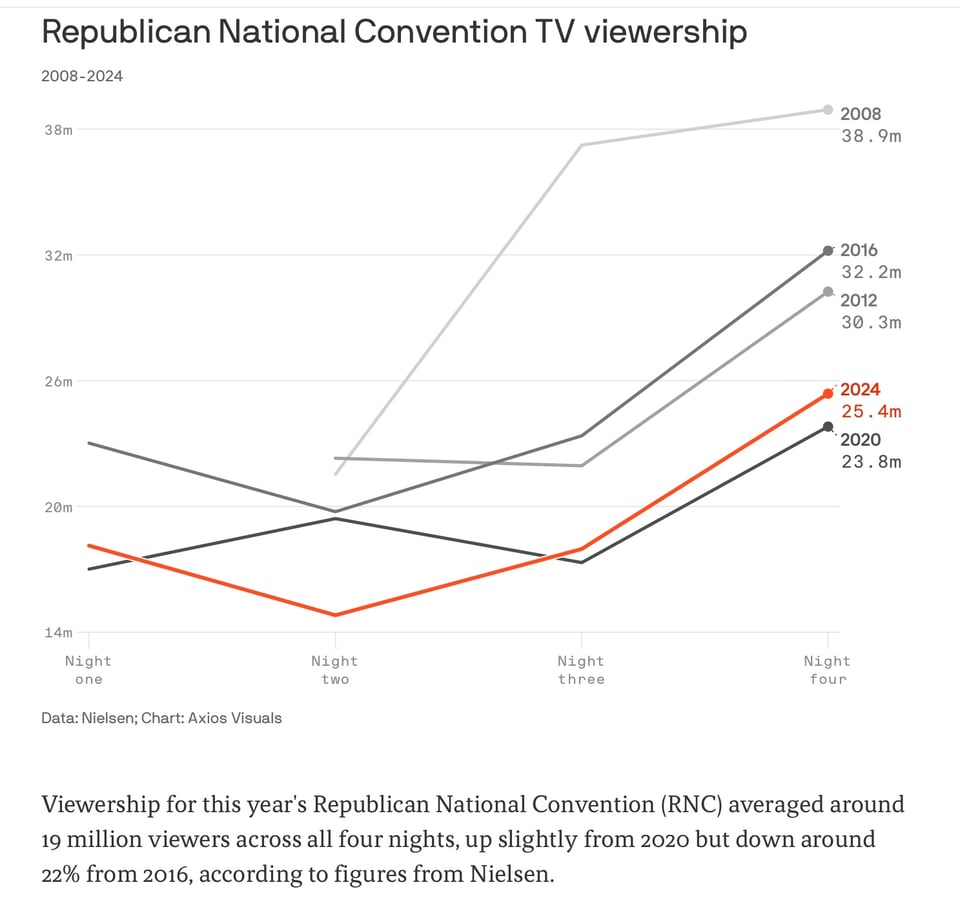 By the numbers: More than 25 million people tuned in live to the final night of the RNC across 14 cable and broadcast networks, the highest number of viewers across the four nights of the convention.