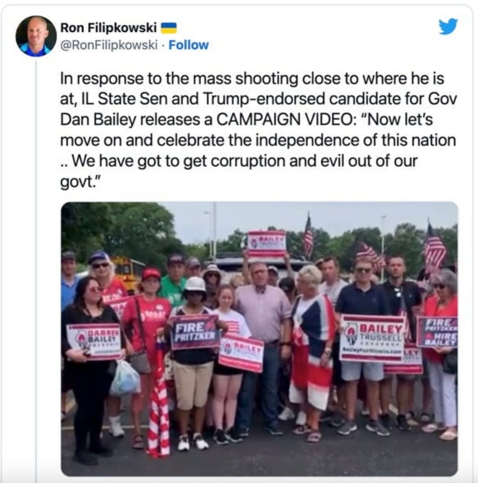 Remember July 4, 2022, when the Republican gubernatorial candidate in Illinois said it was time to move on just two hours after the shooting in Highland Park that left six people dead and 24 seriously injured. (He later said that wasn’t what he meant).