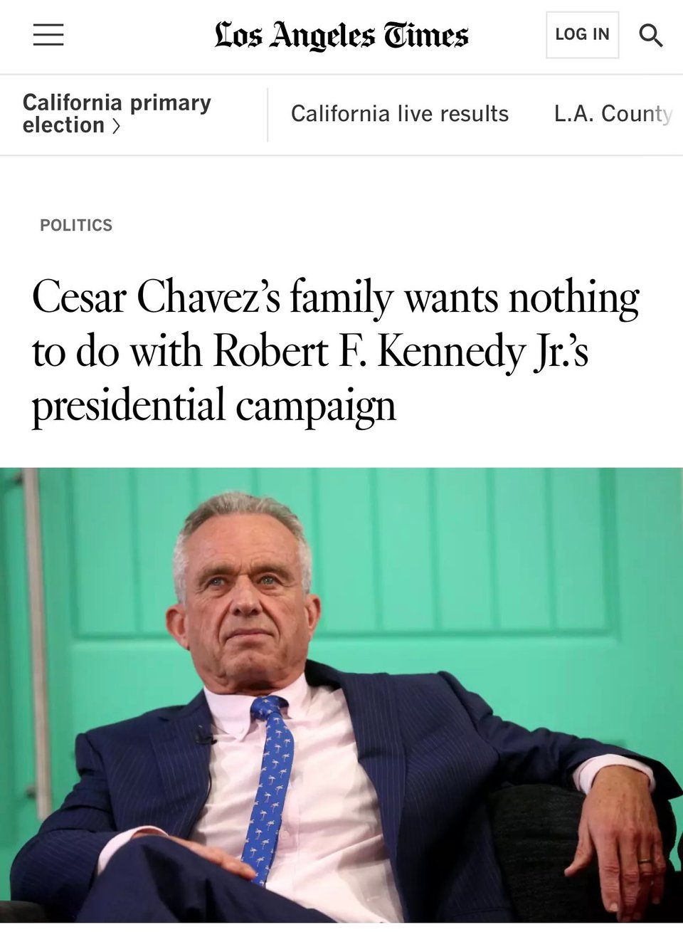 Cesar Chavez’s family to endorse President Biden today after RFK claimed he was close to Cesar Chavez in his ad and that Chavez would have voted for him. https://t.co/3l6ypaYB2k