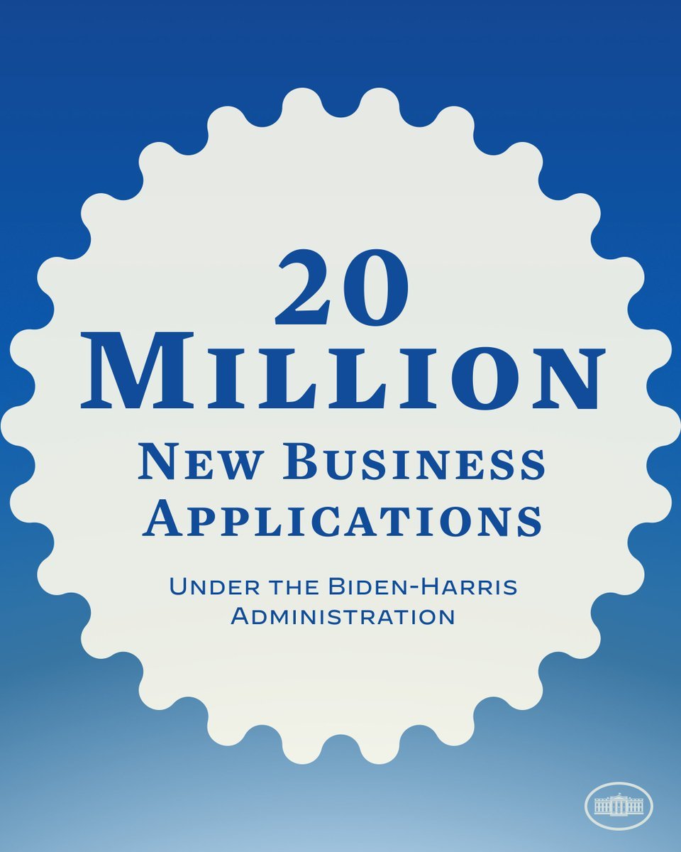 Under the Biden-Harris Administration, we have witnessed the three strongest years of new small business applications on record, and we are on track for a fourth.