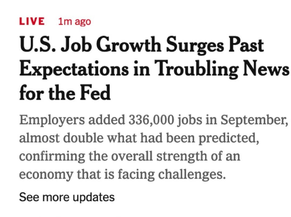 His administration just reported 336,000 new jobs were created in September. That’s DOUBLE what analysts were expecting.