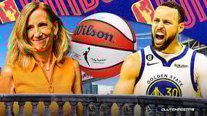 WNBA Commissioner Cathy Engelbert and San Francisco Warriors Star Steph Curry welcome the new WNBA Franchise.