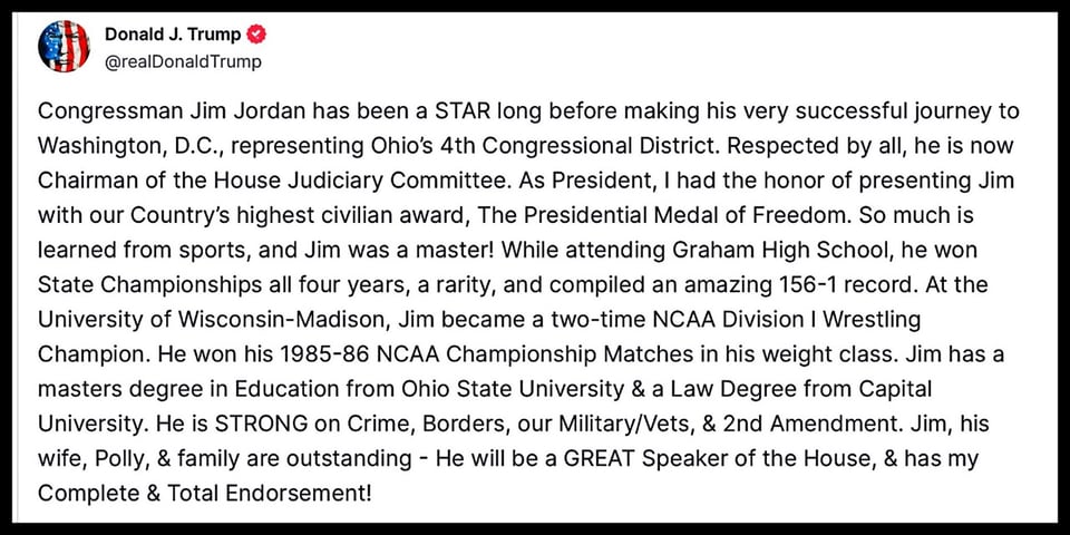 Gym Jordan as Speaker of the House, 2nd in line to the Presidency, a chilling thought.