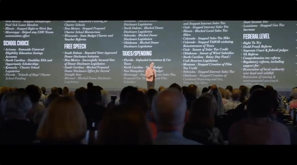 At the 2018 Koch donor summit in Palm Springs, California, a speaker touted the network’s accomplishments defeating taxes and government regulations.