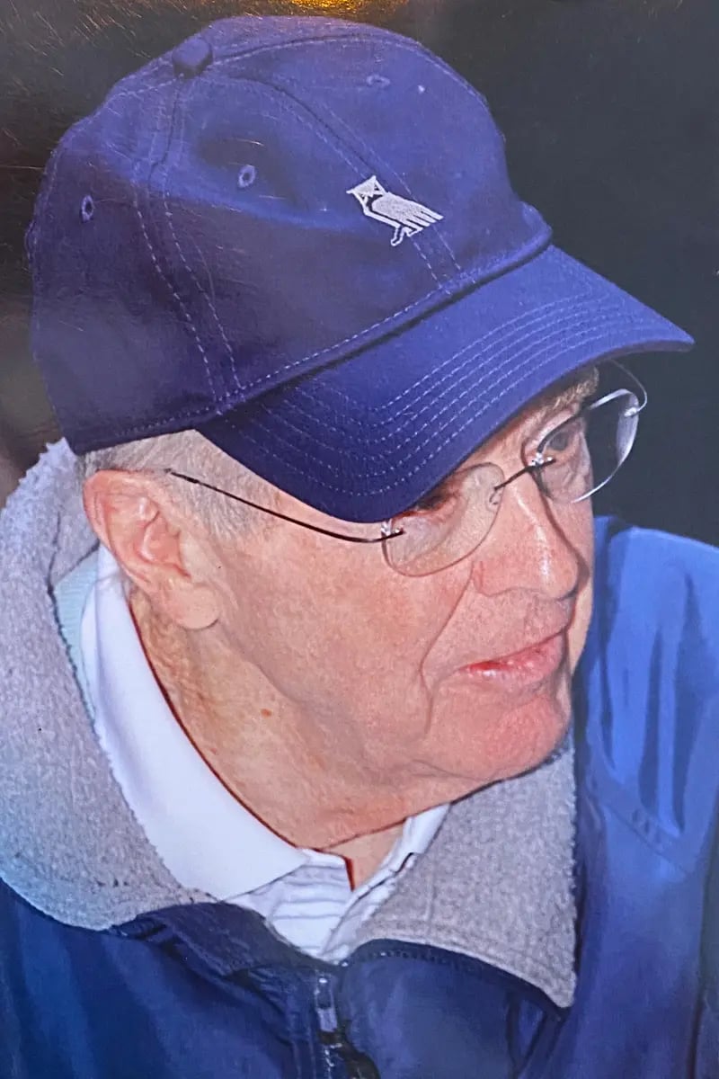 Charles Koch at the Grove. His hat features the club’s owl insignia.