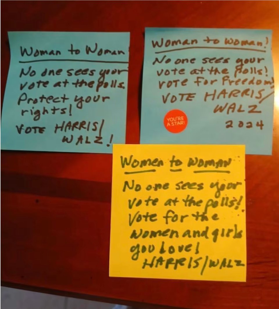 The messages vary slightly, but a typical one reads something like: "Woman to woman: No one sees your vote at the polls. Vote Harris/Walz." (NBC News).