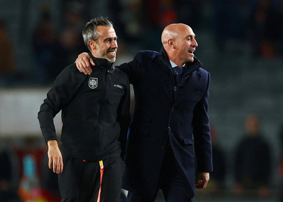 Jorge Vilda, Spain’s recently fired national coach, left, and Luis Rubiales, president of the Spanish Soccer Federation, at the Women’s World Cup in Auckland, New Zealand, last month.