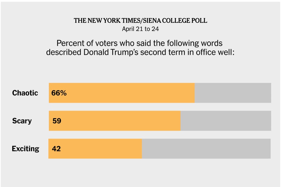 The turbulent early months of Mr. Trump’s administration are seen as “chaotic” and “scary” by majorities of voters — even many who approve of the job he is doing. Voters do not view him as understanding the problems in their daily lives and have soured on his leadership as he approaches his 100th day in office.