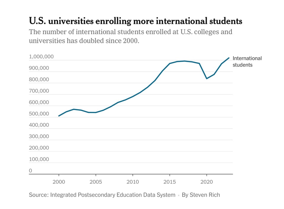The reaction highlights the increasing role international students have played in American higher education, particularly at some of the most prestigious universities. Across the nation, enrollment from abroad has doubled in the last 25 years, with more than 1 million international students now studying in the United States.