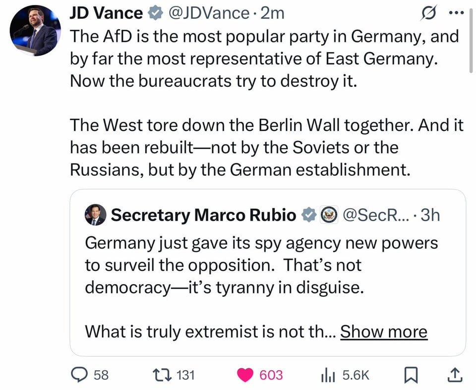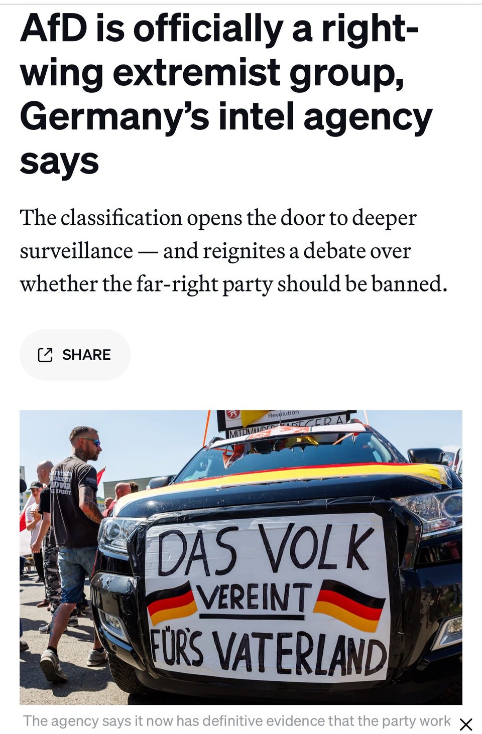 Look who is supporting AfD, which is NOT the most popular party in Germany. This would be really shocking except it isn’t. Trump’s people are full out Nazi.