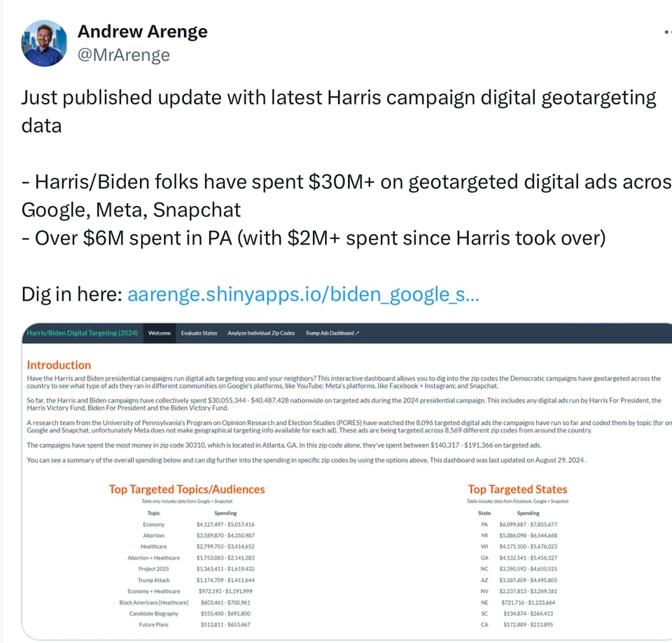 As part of the Harris campaign's youth engagement effort, they launched short digital ad on Snapchat this morning. It's only supposed to run through tomorrow.