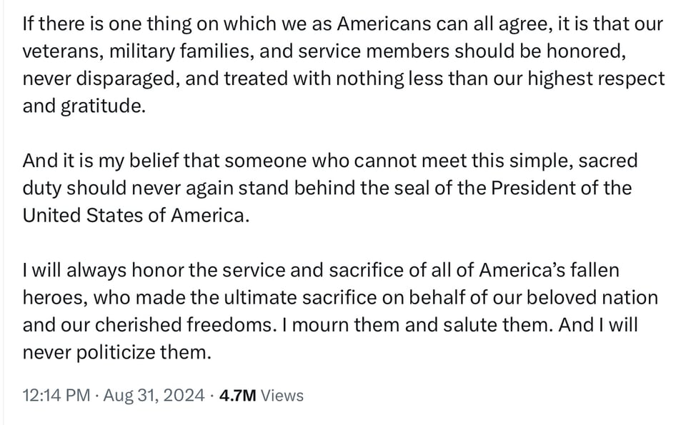— Kamala Harris (@KamalaHarris) August 31, 2024