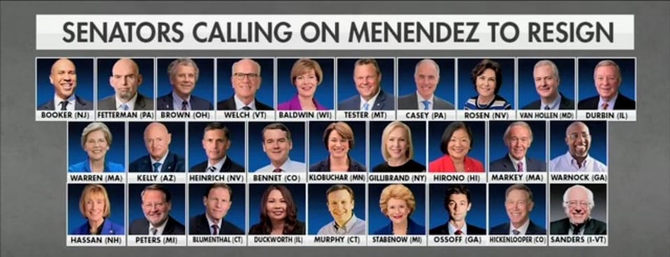 Menendez has lost the support of more than half of his fellow Democratic Senators.