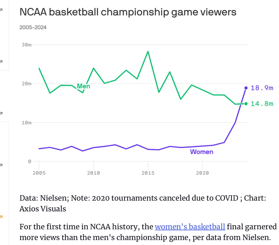 Go deeper: Women's NCAA title game beats men's final viewer numbers
